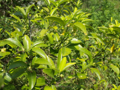 青々とした柑橘類の木にも新しい小さな実がつき始める。